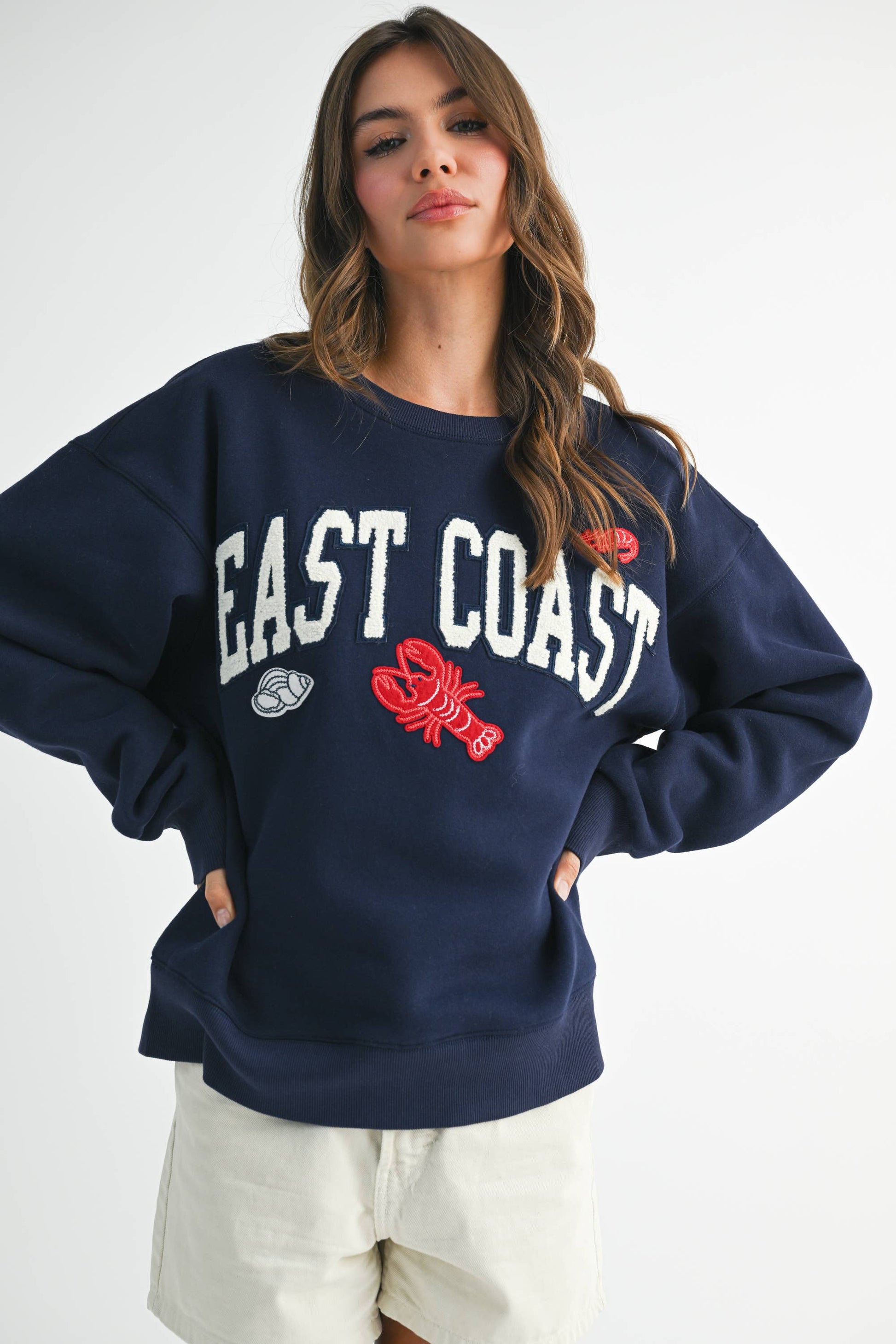 Channeling seaside nostalgia, this cozy pullover features bold collegiate lettering and playful coastal motifs. With its plush fleece feel and relaxed fit, it's the perfect throw-on-and-go sweatshirt for crisp mornings and cool evenings.