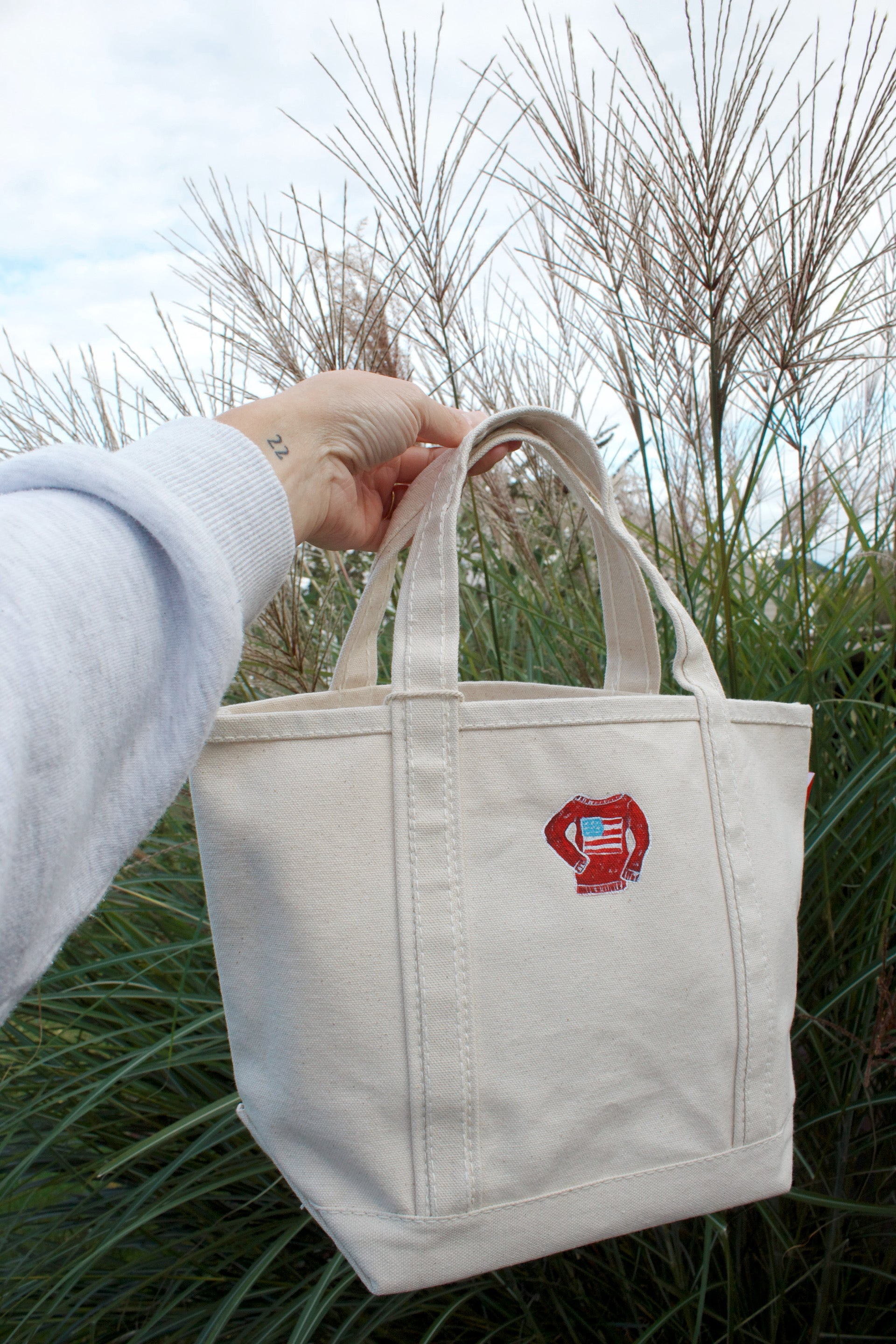 One-of-a-kind, handpainted totes inspired by New England.
