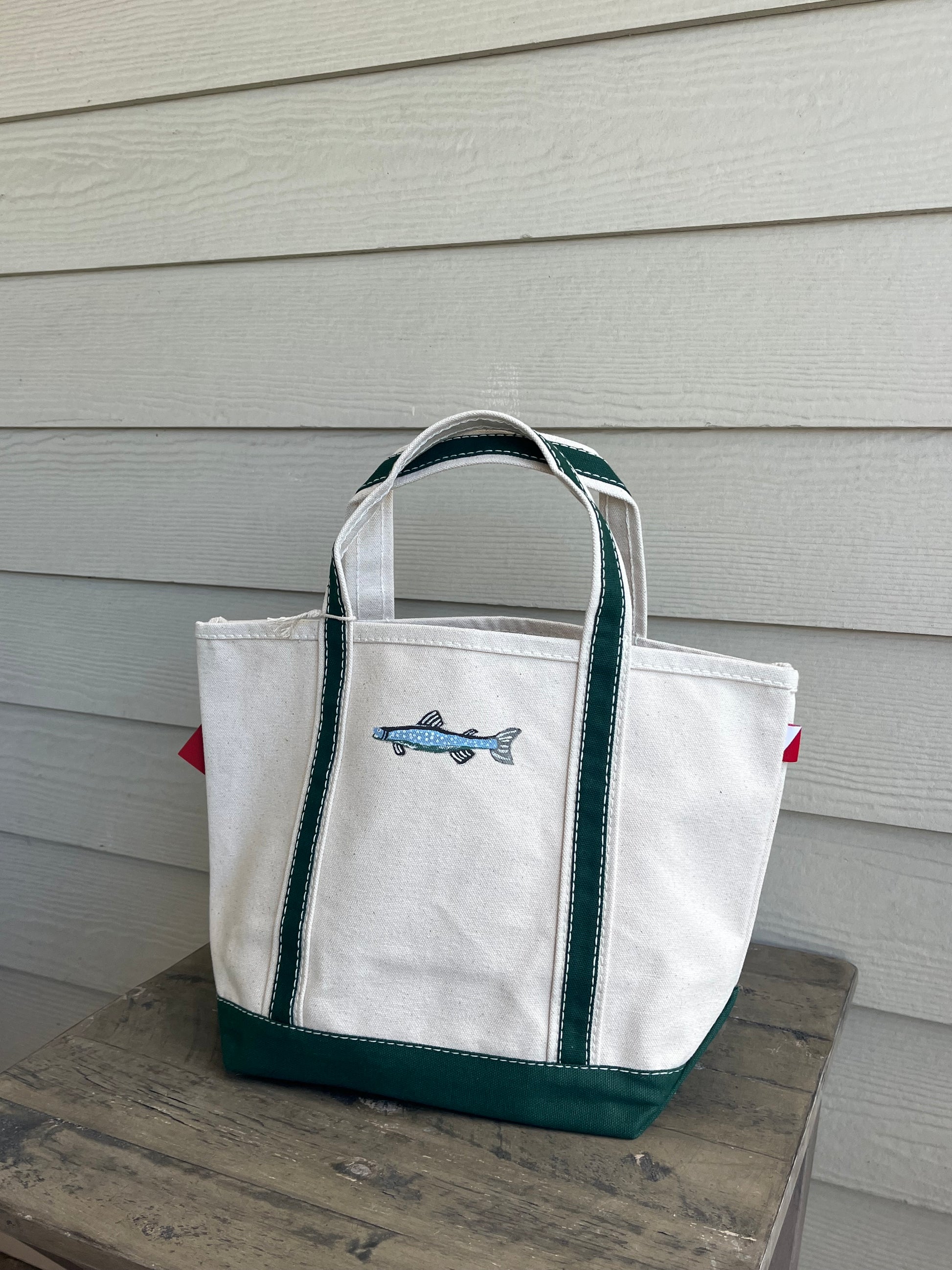 These are one-of-a-kind handpainted totes. Each bag is completely original, featuring artwork that reflects our favorite coastal icons and timeless charm of the region—no two are ever alike.