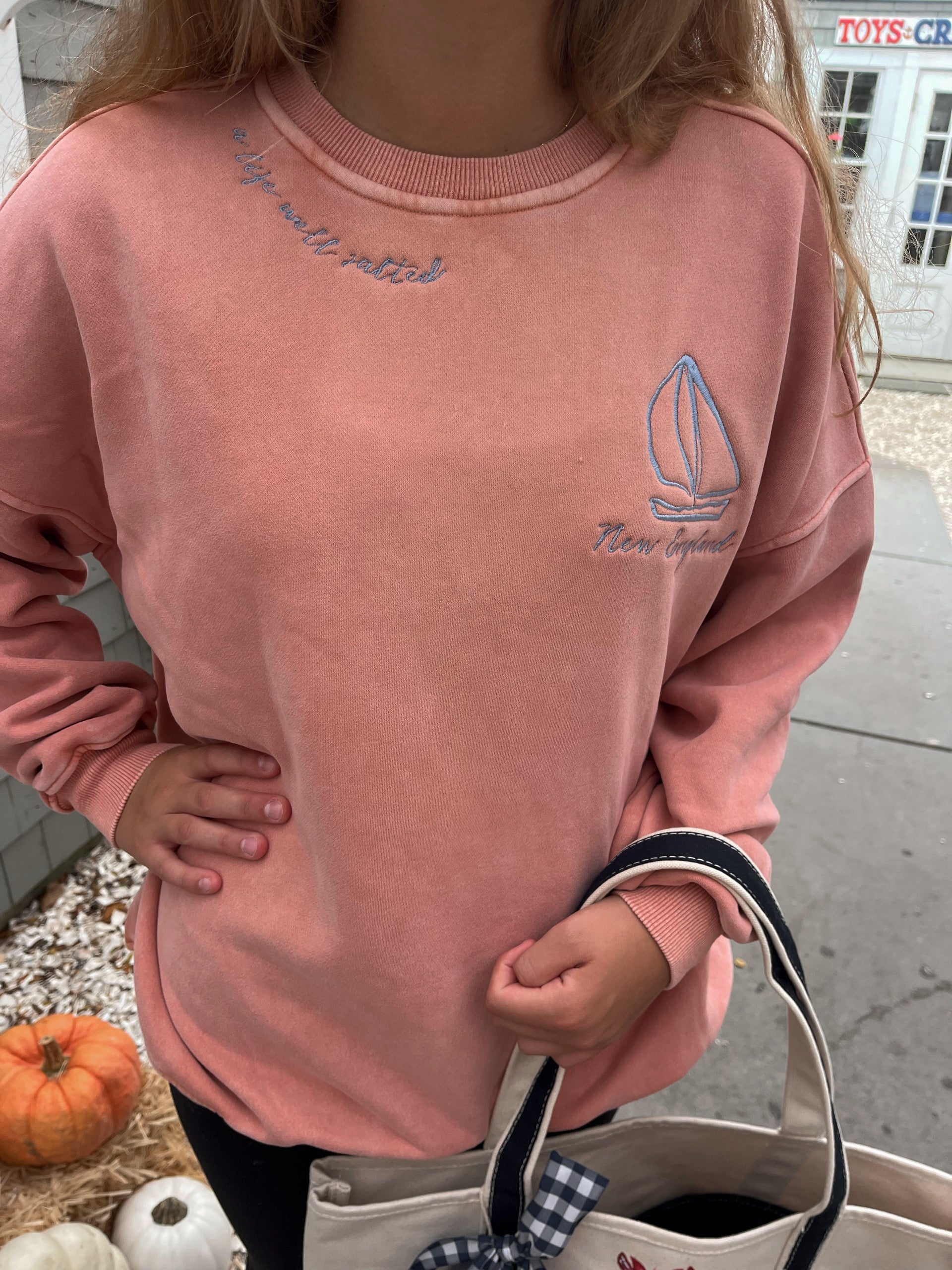 A tribute to a New England life. Sweatshirts are an oversized fit with an acid wash, colors may slightly vary between each crewneck.